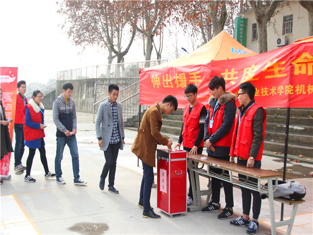 12月1日,亚搏在线全院师生为2015级白血病患者王俊同学在食堂门口进行了爱心募捐,共募得善款28161.6元。