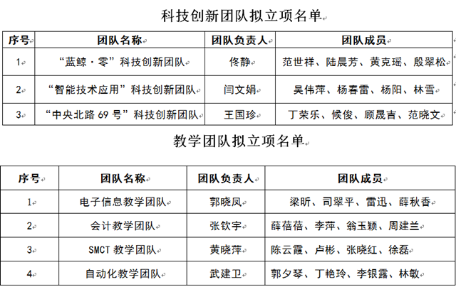 根据《亚搏在线科技创新团队建设管理办法(试行)》(南机电院[2016]38号)、《南京机电职业学院教学团队建设与管理办法(试行)》(南机电院[2016]37号)的有关规定,经校内公开申报、资格审查和专家评审,确定亚搏在线拟立项科技创新团队3个、教学团队4个,现予以公示,名单如下: