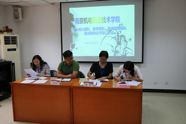 9月26日下午,学院举行首批专业核心团队、教学团队、科技创新团队建设期责任书签订仪式。党委书记、院长周庆礼,党委副书记、常务副院长顾益明,纪委书记、副院长陈赵,党委委员、副院长刁爱军,各系系主任、人事处、教务处、科研及校企合作处的部门领导以及“三支团队”的负责人、团队成员出席仪式。仪式由人事处处长夏玲玲主持。