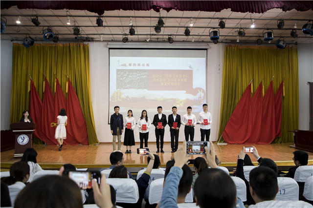 学生工作处处长张宝中宣读《关于2018-2019学年“五·四”红旗团支部、“五·四”青年奖章、优秀团干部、优秀团员、校园十星的表彰决定》。授予电信171团支部等9个团支部“五四红旗团支部”荣誉称号,刘鹏飞等6名同学“五四青年奖章”荣誉称号,杨永勐等83名同学“优秀团干部”荣誉称号,余心茹等113名同学“优秀团员”荣誉称号,王志鹏等10名同学“校园十星”荣誉称号,邓洁等267名同学“校园十星提名奖”荣誉称号。