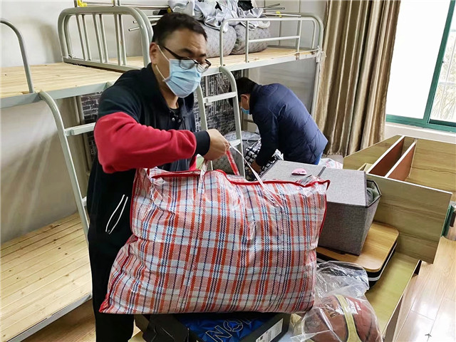 2月20日,学院新冠肺炎防控集中隔离医学观察点搬迁工作正式启动。本次搬迁共涉及人文社科系150名学生,所有学生物品由学院统一搬迁。人文社科系系部书记和辅导员用一天时间通知到每一位学生,让学生事先知晓并给予充分理解,向同学们说明原因并细心聆听同学们的需求,以疏代堵,充分发挥班级学生干部模范带头作用,妥善解决每一位学生的诉求。为积极配合搬迁,人文系党支部先锋队队员李庆路和王维朋两位老师积极参加搬迁工作,有效保障搬迁任务顺利完成。