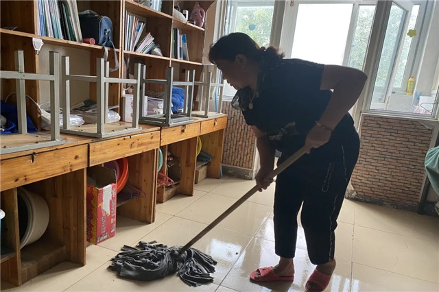 为进一步保障学生们身体健康,消除同学们的后顾之忧,营造良好学习生活环境,迎接后续入校的新生,8月20日,学工处组织宿管中心对2019级学生342间宿舍进行了整理打扫、开窗通风。宿管中心21名员工从早晨5点开始清扫行动,宿管阿姨们握着扫把,低身弯腰,将地板上的垃圾扫进畚斗,一间一间检查寝室环境卫生、开窗通风透气、细心整理归置物品、扫地清理垃圾。虽然南京的天气还是很炎热,但一想到能为学生带来舒适的居住环境,宿管阿姨们都干劲十足。清扫工作完成后宿管中心将对342间学生宿舍进行全封闭紫外线和84消毒处理,确保学生安全入住。