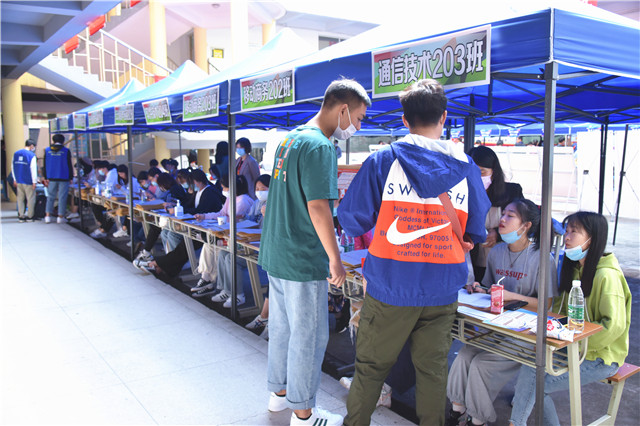 按照疫情防控要求,今年新生报到期间,家长原则上不入校。志愿者在火车站和高铁站开展接站服务,系部师生志愿者们全部出动,帮助入校报到的新生运送行李,让不能陪同的父母安心。扫码报到,领取材料,手续简单,但心意温暖。报到流程、行李搬运、指路问路曾经懵懵懂懂进入校园的志愿者们变成了为新生们保驾护航的学长学姐。