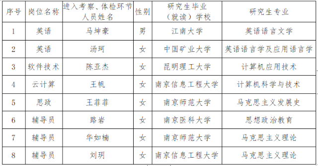 根据《亚搏在线2020年度教师及辅导员补充招聘公告》,经过资格审查和考核等环节,并经学院公开招聘领导小组和党委会研究,现将各招聘岗位进入考察、体检环节的人员名单予以公告。