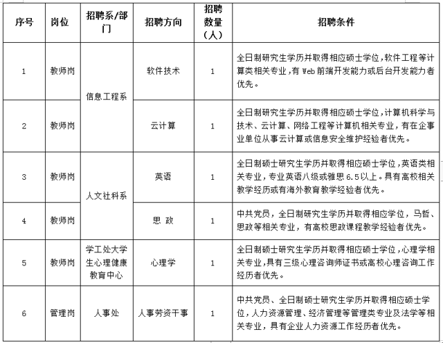 6、具备报考岗位要求的专业、技能等资格条件(详见下列岗位要求);