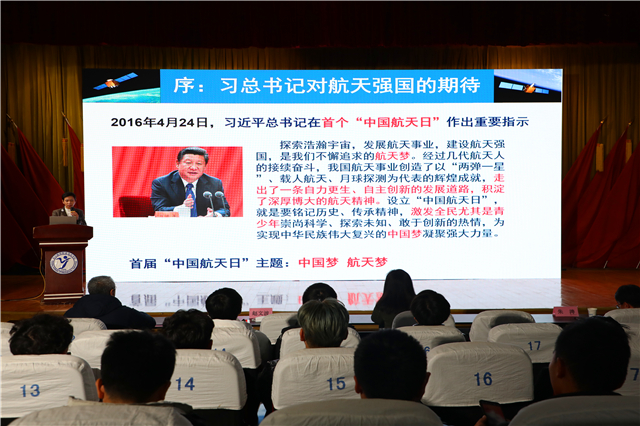 活动上,副院长陈赵致辞。陈院长回顾了我校与中国航天科技国际交流中心的合作历程,陈院长说,中国航天精神要求我们拥有楚囊之情、于家为国的理想信念,恪尽职守、开拓创新的思想路线,锲而不舍、求真务实的精神品质,精诚团结、众志成城的优良作风。赵文波院士在航天领域的研究为我们诠释了中国航天精神。陈院长勉励我校学生树立崇高信仰与理想,传承中国航天精神和工匠精神,在学习中积极创新,在实践中追求卓越,在合作中实现成长。