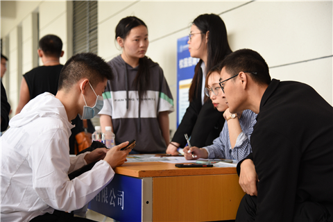 招聘会上,高淳区人社局就管中心副主任魏元明为我校学子召开了就业政策宣讲会,同时高淳区就管中心和壹生涯工作室分别设立了政策咨询和就业指导区,现场为同学们答疑解惑。12家企业人力资源负责人在展位前耐心的为同学们介绍了公司的发展历程、管理模式、组织结构、招聘计划、员工薪资、公司生产和生活情况并进行了现场面试。结合就业情况摸排,各系辅导员还针对41位有意向在高淳的同学,与到场企业进行了重点推荐。此次招聘活动,学校共有超过500名同学投递了简历,参加了现场面试,400多人初步达成就业意向。