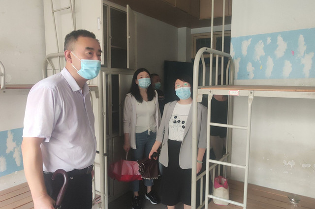 洪总一行听取了学校中央门校区各项防疫措施汇报,先后检查了教学楼、食堂、宿舍,查看相关物资、设施等准备情况。洪总对我校中央门校区的疫情防控工作予以充分肯定,同时提出,当前疫情形势比较严峻,学校一定要严格落实南京市疫情防控要求,按照要求做好人员排查以及常态化疫情管控,包括:入口处人员体温检测、信息登记及健康码行程码查验台账记录、临时隔离室设置、办公区、宿舍区、食堂等人员密集场所的消毒消杀记录、师生每日健康打卡、防疫物资储备及发放台账等。针对学校实际情况,洪总要求学校严格落实疫情防控工作要求的同时,做好中央门校区教室、食堂、宿舍维修,把握好工期进度,确保新学期投入使用。