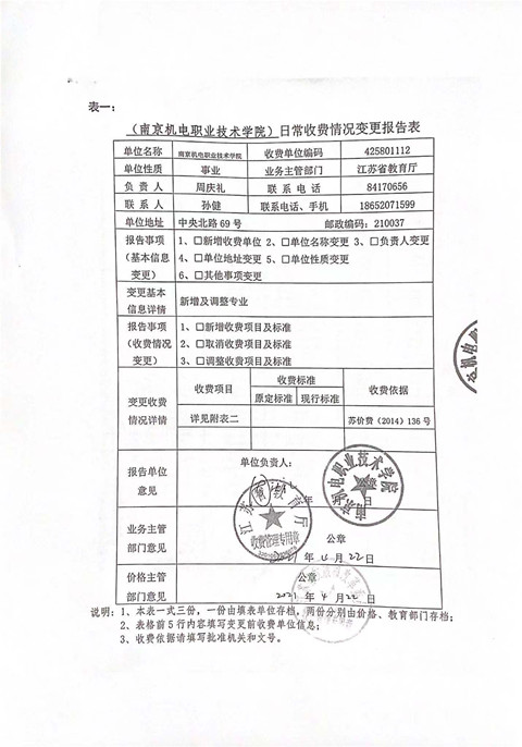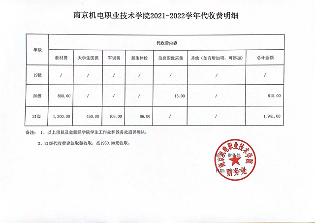 2021年秋季学费、住宿费及代收费标准公示如下: