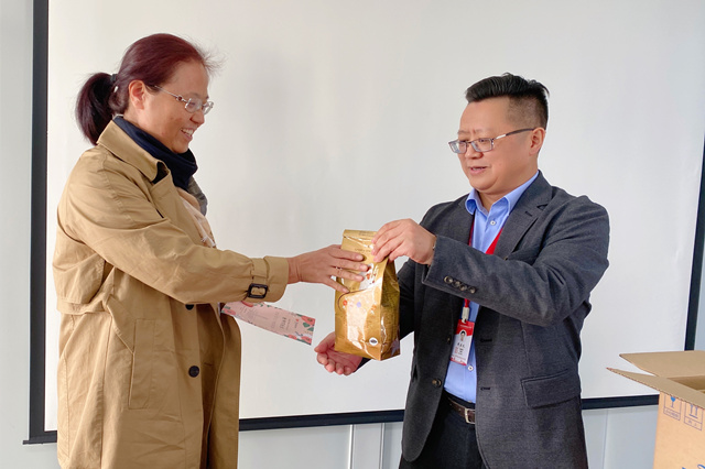 随后,校领导分赴各系部及职能部门,为辛勤的园丁们送去暖暖的问候和学院的心意。一张小小的贺卡,一盒甜甜的巧克力,这是机电教师节特有的礼物。每一年的教师节,校领导都会亲自把这份心意送到每一位教职工手中。礼物虽轻,情深意重,从新进的年轻教师到工作多年的老教师,这份来自学校的心意让他们收获了满满的感动与惊喜。