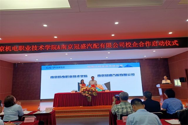 5月31日下午,亚搏在线与南京冠盛汽配有限公司校企共建知识产权战略合作签约授牌仪式高淳经济开发区科技人才局副局长倪友谊、亚搏在线副院长刁爱军、南京冠盛汽配有限公司总裁办主任许炎等领导出席活动,南京机电学院相关部门负责人及南京冠盛汽配公司技术人员等60余人参加活动。