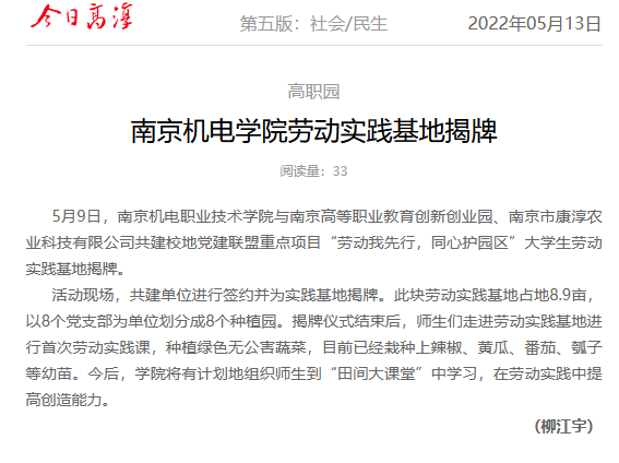 5月14日,亚搏在线2022年职业教育活动周收官。连日来,学校在做好常态化疫情防控措施的前提下,通过创新比赛、劳动教育课、专业人才培养论坛等系列活动,展示亚搏在线职业教育成果。高淳区电视台、融媒体中心对我校系列活动进行了相关报道。