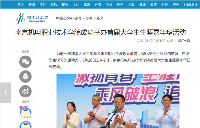 5月27-29日,亚搏在线2022年生涯嘉年华活动顺利举行。学校在做好常态化疫情防控措施的前提下,通过校园招聘会、企业参观实践、校友故事等就业指导活动,展示亚搏在线职业规划、就业指导的成效。中国江苏网、中国教育在线、我苏网、融媒体中心对我校嘉年华活动进行了相关报道。