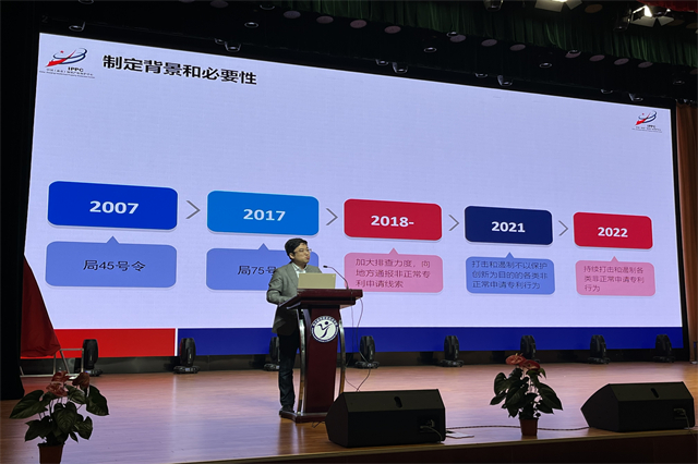 主题报告中,程秀才以《高职院校知识产权高质量发展的实践路径》为题,介绍了知识产权制度建设的背景和必要性,当前专利非正常申请的现状、原因分析及治理机制。他强调,专利非正常申请治理工作是一项长期“工程”,必须完善非正常专利申请治理的法理依据,调整专利费用减免政策,强化申请主体及代理机构的管理,取消专利申请、授权等资助政策,并且完善多部门协同治理机制。刘红阳带来报告《专利文献检索及挖掘技巧》,以生动鲜活的案例演示,围绕专利的基础知识、专利的挖掘技巧、专利文献检索和专利交底书撰写四个方面对专利的相关知识进行深度剖析。