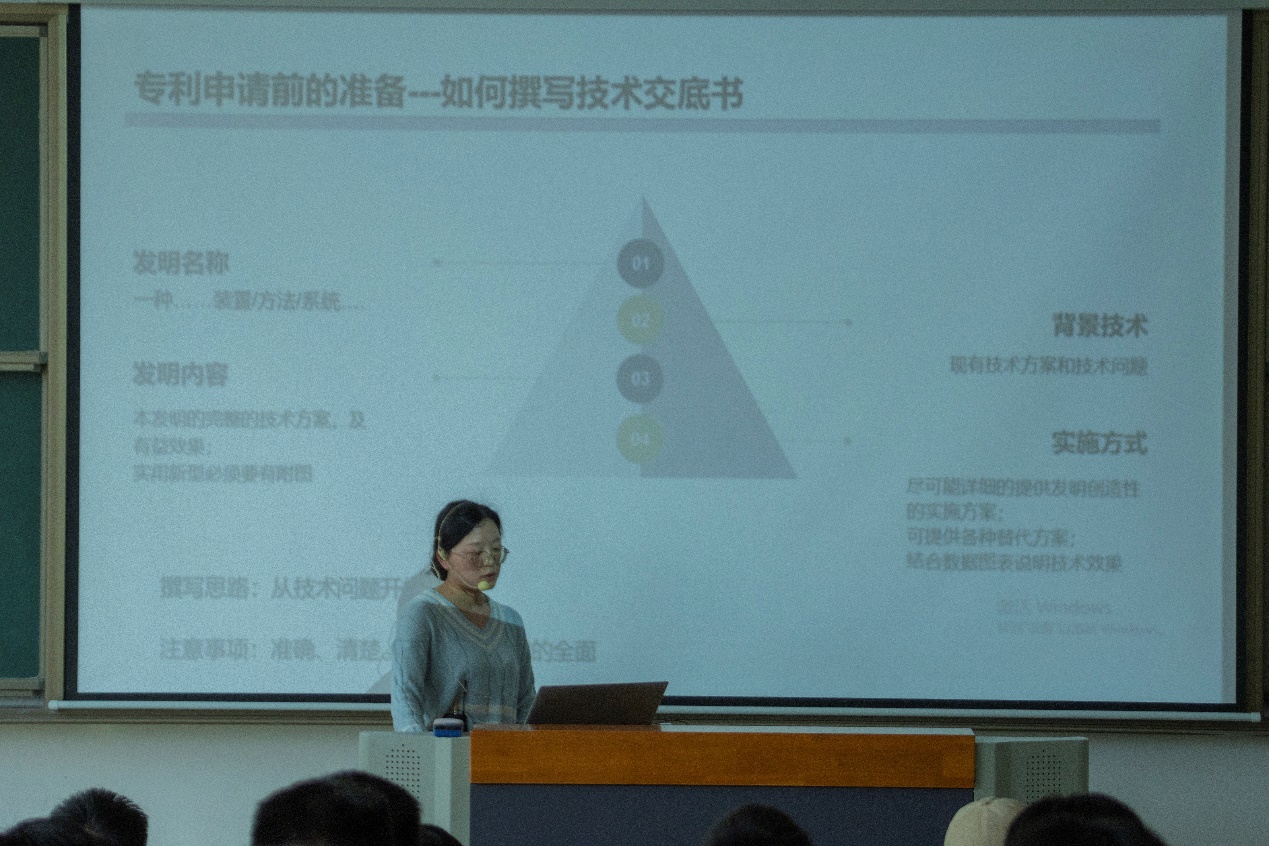 学校面向全校师生,围绕专利政策解读、专利文献检索、专利技术交底书撰写、专利挖掘方法等知识产权相关知识,采用线上线下相结合的方式,组织开展了知识产权宣传系列讲座20余场。