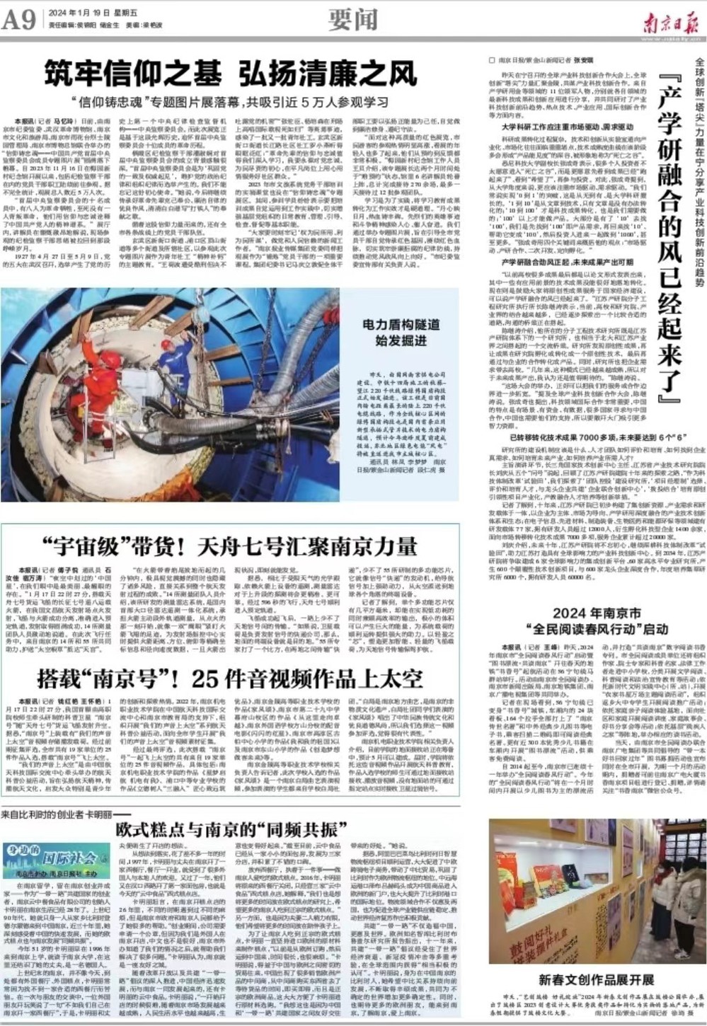 本报讯(记者王怀艳通讯员金慧敏)“震撼!自豪!脑海中至今还在一遍遍回放卫星搭载天舟七号升空时发出的巨大火焰和轰鸣声。”1月19日,“南京号”科普卫星研制团队——亚搏在线31名师生代表从文昌航天发射场凯旋。