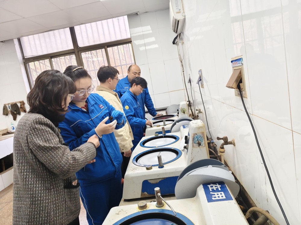为深入贯彻南京机电-南钢现场工程师项目产教融合人才培养方案,切实提升学生实践创新能力,机械工程系组织2022级现场工程师班李新梁、刘欢、彭博三位同学参与2025年江苏省职业院校技能大赛新材料智能生产与检测项目。鉴于竞赛模块三(金相制备与分析)的技术要求,系部在南京钢铁股份有限公司的大力支持下,安排三名同学进入南钢科技质量部实验检测中心由企业导师给参赛同学开展专项赛前培训。28日下午,胡书记和系部老师来到实验检测中心看望培训的企业导师和备赛的同学。