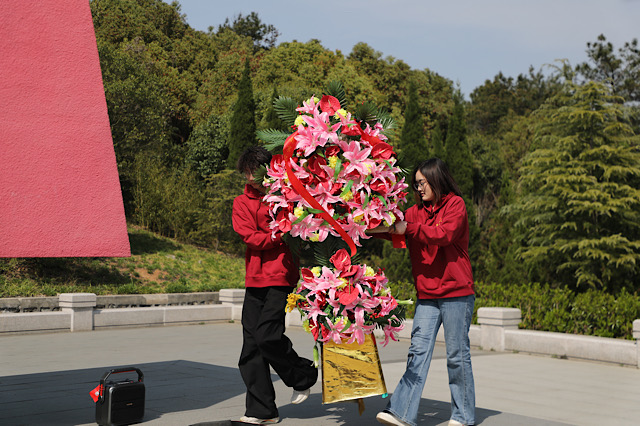 在庄严肃穆的纪念碑前,师生们整齐列队,神色凝重。低沉的哀乐响起,全体人员低头默哀,致以对革命先烈的深切缅怀。青马班学员迈着坚毅有力的步伐,向纪念碑敬献花圈,校团委书记孙晓燕整理缎带,饱含着对先烈的无上敬意。
