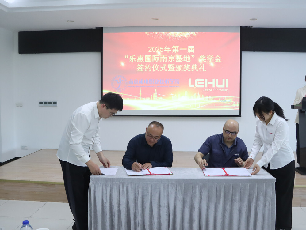 5月14日,第一届“乐惠国际南京基地”奖学金签约仪式暨颁奖典礼在乐惠国际南京基地培训厅举行。亚搏在线党委副书记、副校长赵学洪,机械工程系主任毛奇,党支部书记胡枫,辅导员代表,教师代表,大三实习学生及23级学生代表,企业领导齐聚一堂,共同见证这一荣耀时刻。