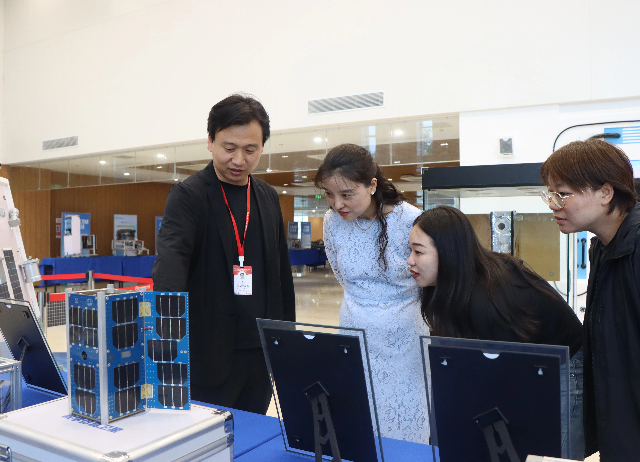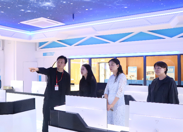 签约仪式结束后,与会人员参观了学校的航天科普馆和非遗工坊。航天科普馆位于弘德楼一楼,包括航天主题展厅和测控中心。在测控中心,大家观看了火箭发射、分离并与天宫空间站对接的模拟视频,身临其境地感受了航天科技的魅力。主题展厅则展示了各类火箭、天宫模型以及学院参与制造的“南京号”八一08星地面星,让参观者对航天科技有了更深入的了解。非遗工坊则展示了南通板鹞风筝、秦淮花灯、扬州精细木作等传统手工艺品,让南京市秦淮实验小学一行在欣赏艺术之美的同时,也感受到了中华文化的博大精深。