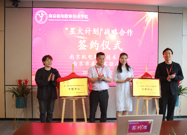 2025年5月23日,我校与南京市秦淮实验小学在育德楼305会议室举行了“星火计划”战略合作签约仪式。学校党委书记、校长周庆礼,蓝岛创客空间主任、信息工程系主任王国珍,科研及校企合作处处长李木香,蓝岛创客空间老师朱妍焘,南京市秦淮实验小学校长卞传娟,副校长陈玉兰,老师刘雯和赵颖出席了本次活动,双方就深化教育合作、共同推动创客教育发展达成了共识。