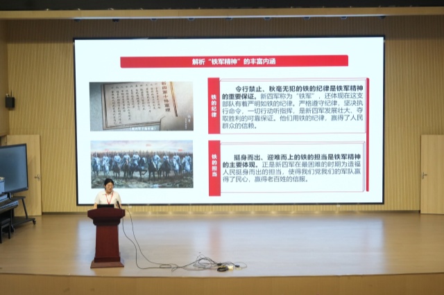 话剧展演结束后,亚搏在线马克思主义学院的毛莉老师以“讲好新四军故事,凝聚奋进力量”为主题,为两校师生呈现了一堂别开生面的思政课。毛莉老师以新四军话剧内容为切入点,结合多媒体资源与互动讨论,引导学生从历史视角思考当代青年的责任,课堂气氛活跃,学生参与度高。