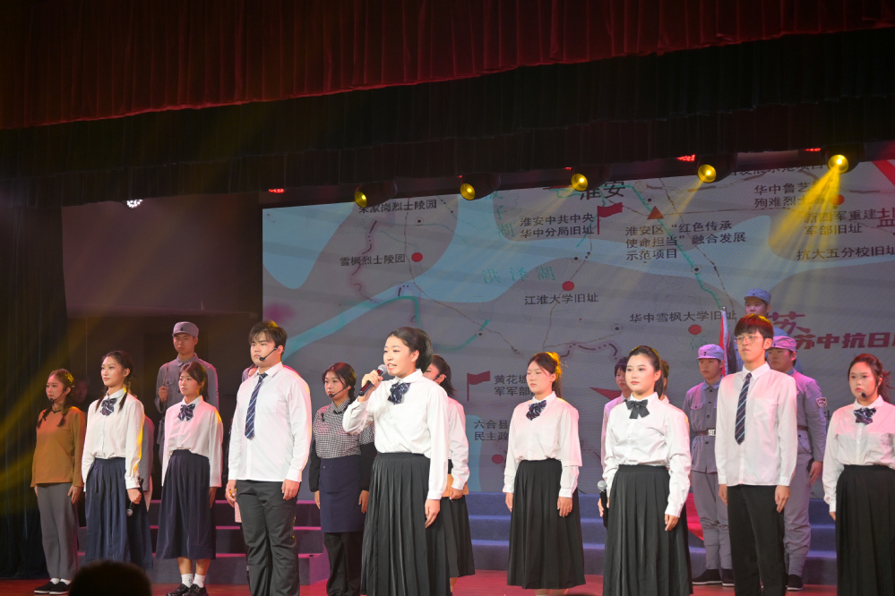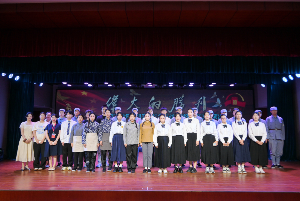 8月28日,省新四军和华中抗日根据地研究会在南京以文艺演出纪念抗战胜利80周年。新四军老战士李剑锋、丁位西、安迪光、姜文特等近300名观众观看演出。我校师生代表南京市新四军和华中抗日根据地研究会出演原创情景剧《东进!东进!东进!》,重现了新四军东进北上、浴血奋战的壮阔征程,赢得现场热烈掌声。