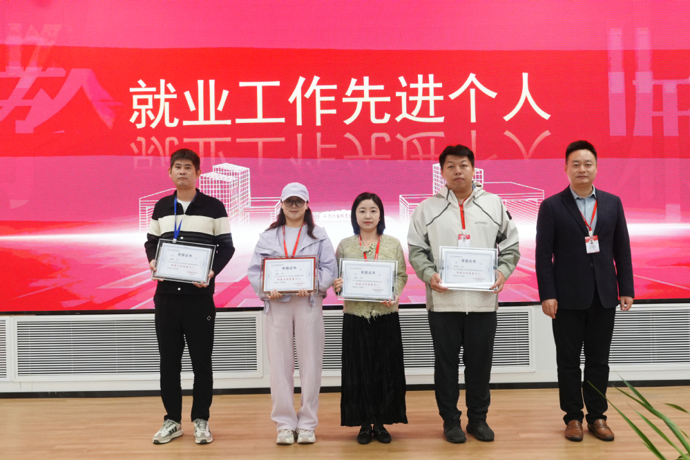 党委委员、副校长孔德丽为10名“就业先进单项奖”和4名“就业工作先进个人”颁奖。