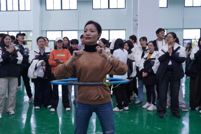 圈动时光项目中,队员们双手握住呼啦圈,随着裁判计时开始,仅靠腰腹发力让呼啦圈旋转起来。队员们节奏平稳,呼啦圈在腰间“转不停”。志愿者在一旁认真计数,团队累计的有效圈数不断增加,赛场旁的加油声此起彼伏。