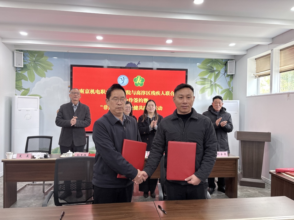 2025年11月27日,学校与高淳区残疾人联合会共建的“亚搏在线社区助残教育服务站”在固城街道残疾人之家正式揭牌,并启动“非遗传承·残健共融——非遗文化赋能行动”社区教育活动。活动由高淳区残联副理事长夏晨主持,学校党委委员、纪委书记姜振宇,高淳区残联理事长王翠香,继续教育学院院长周云龙等出席。