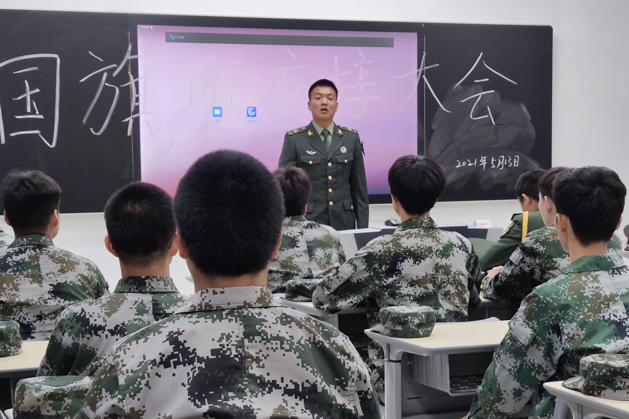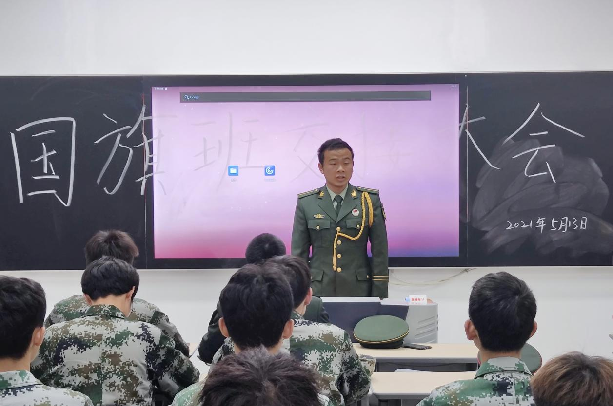 2021年5月13日,亚搏在线国旗班新老交接大会在博学楼105室隆重举行。