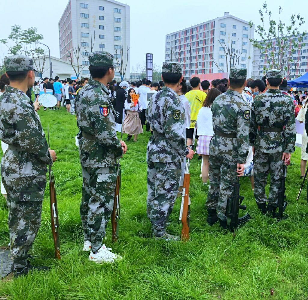 巡游活动的活动项目种类很多,既有展现个人魅力的音乐活动,也有体现合作精神商业思维的摆摊活动。不过最令人激动的还是国防教育协会主办的军人合影活动。国旗班的同学身穿帅气的军装,腰束武装带,手持冲锋枪,精神威武地站在活动现场,引来了大批崇拜者,他们借此机会,向前来参加活动的同学和老师们对征兵的相关政策做了宣讲,激发了许多学生想要当兵的热情。参加活动的同学,还可以通过各种游戏获得虚拟货币,以此换得和穿着军装的退役军人合影一次。