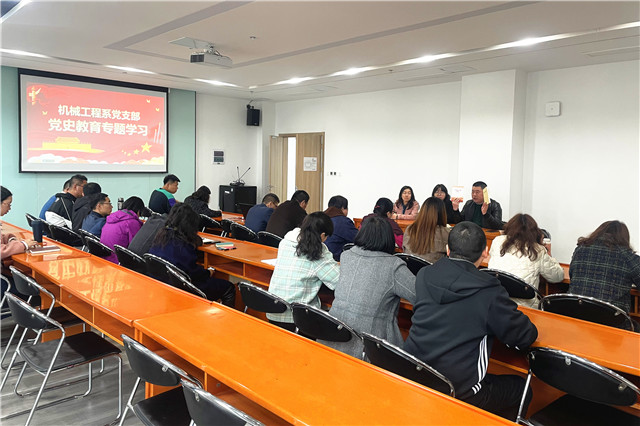 机械工程系党支部在支部书记李杰的带领下,从党的诞生、土地革命、抗日战争、民主革命的伟大胜利、新中国成立初期的艰难斗争、中国建设社会主义道路的艰辛探索、伟大的历史转折、社会主义改革开放和现代化建设等方面回顾了我党百年奋斗的艰辛历史。