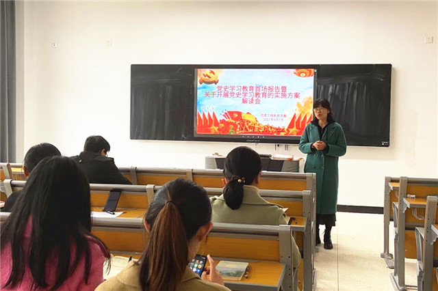 信息工程系党支部书记胡枫召开了支部党史学习教育首场报告暨关于开展党史学习教育的实施方案解读会,并成立了党史学习教育学习小组,全体党员教师纷纷表示要以良好的学风开展党史学习教育,抓好专题学习、专题党课、专题民主生活会和专题培训。