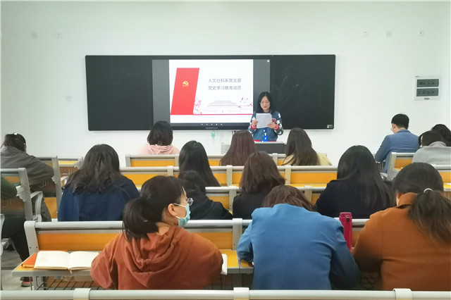 人文社科系党支部的第一次党史学习教育由思政中心的赵珊珊老师主讲。赵老师牢牢把握中国共产党历史的主题主线,重点梳理了中国共产党在新民主主义革命时期的历史事件,支部全体教职工深深感受到红色政权来之不易,深刻认识到强有力的领导核心对于党和国家事业的极端重要性。