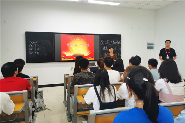 其次,信息工程系团总支书记于宇围绕《重温中国共产党党史》进行主题发言,从学习中共党史的重要意义、内容和方法,带领学生重温党的光辉历史,号召广大青年深入学习党史,并借助伟人邓小平通知的传奇经历,全面贯彻习近平总书记对青年学生的要求,重实践、勇担当、讲奉献,在日常生活中展现青年活力、青年担当,努力成长为能够担当民族复兴大任的时代新人。