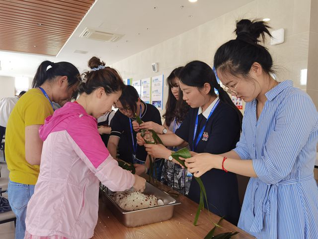 仲夏六月,在一年一度的传统节日端午节来临之际,为弘扬传统文化,促进教职工之间的交流,营造良好的节日氛围,6月11日下午,学校工会联合学校物业公司,共同开展“品味端午,粽香校园”主题包粽子活动。
