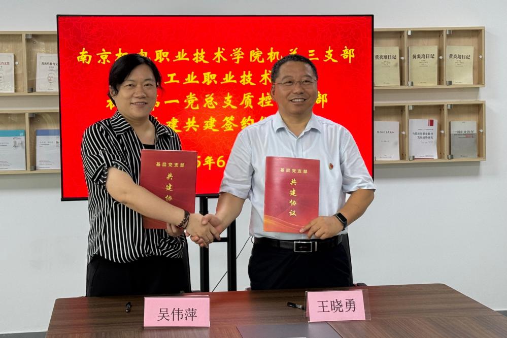 为充分发挥党支部的战斗堡垒作用和党员的先锋模范作用,进一步提高学校内部质量保证体系建设质量,促进学校高质量发展,2025年6月20日,南京工业职业技术大学质控党支部与我校机关三支部正式签订《基层党支部共建协议》,开启合作新征程。南京工业职业技术大学质控党支部书记王晓勇,亚搏在线机关三支部书记吴伟萍,双方支部党员代表及相关部门负责人出席签约仪式。