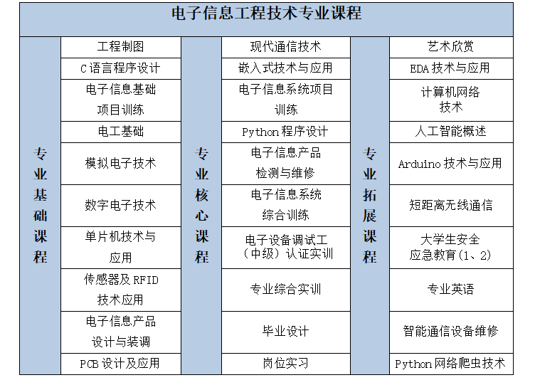 电子信息工程技术专业实践教学条件拥有智能技术应用与开发实训室、电工电子技术实训室、嵌入式开发实训室、智能电子产品设计与开发实训室。