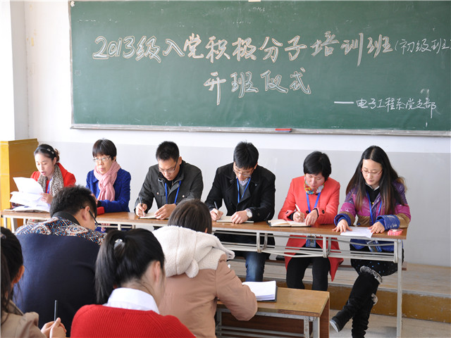 11月18日中午12:30,亚搏在线电子工程系党支部在教学楼A208举行2013级入党积极分子初级班培训开班仪式。电子工程系党支部书记张宝中,宣传委员梁金平,组织委员林雪,党员惠珍、权海平、杨瑞以及31名积极分子学员参加了此次开班仪式。仪式由林雪老师主持。