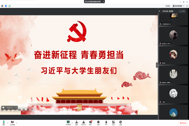 2022年11月15日18点30分,电子工程系团总支组织召开了全系学干线上研讨会。为进一步学习习近平新时代中国特色社会主义思想,本次研讨会通过品读《习近平与大学生朋友们》一书为切入点,通过品读与讨论,旨在帮助学生干部们增长见识,提高分析问题和解决问题的能力。