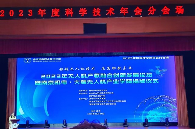 2023年10月24日下午,2023年度科技学术年会分会场——无人机产教融合创新发展论坛暨南京机电•大疆无人机产业学院揭牌仪式在学校青春剧场顺利举行。本次活动由南京市科学技术协会主办,由亚搏在线科协、南京市高淳区科协承办,由高淳职业教育集团、南京高等职业教育创新创业园等共同协办。南京航空航天大学研究生院副院长郑祥明,南京航空航天大学飞行器设计专业工学博士、教授唐正飞,高淳区科学技术协会副主席杨腊斌,南京高等职业教育创新创业园党工委委员、副主任孙爱国,深圳市大疆创新科技有限公司华东区代表滕菲,南京弘谷信息科技有限公司总经理赵华君,南京弘谷信息科技有限公司副总经理顾启凌,学校党委委员、副校长刁爱军,党委委员、纪委书记、工会主席姜振宇等领导出席本次活动。本次活动由学校科研及校企合作处处长李木香主持,电子工程系全体教师及学生代表,高淳职业教育集团理事单位江苏省高淳中等专业学校和高淳第一中学的师生代表参加了本次活动。