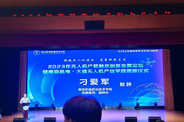 本次活动以“领航无人机技术,展翼职教未来”为主题,立足科技创新发展基点,聚焦无人机新兴业态,从产学融合的角度共同探讨技术发展前沿、产业发展趋势及职业技术人才培养,为无人机科技与职业教育创新融合发展提供新视野、新思维和新动能。产教融合,职业教育助推无人机“飞”出产业发展新高度。致辞中,刁爱军介绍了南京机电学院打造航空航天特色学校、建设无人机应用技术专业建设方面的基本情况。