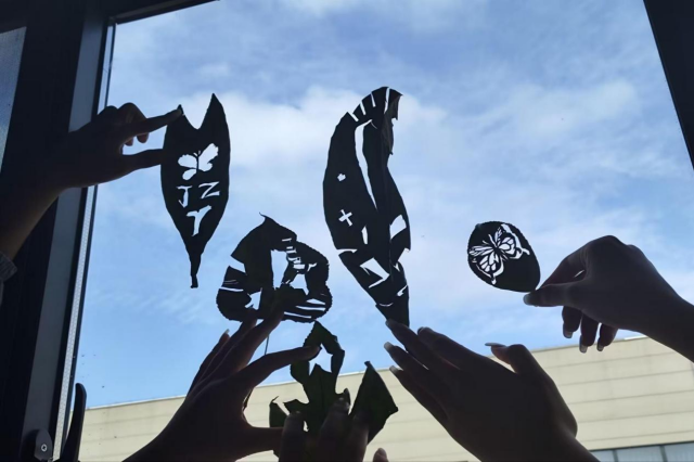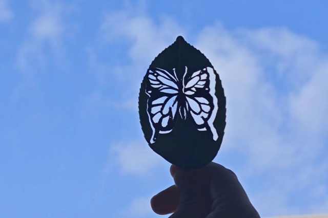 活动过程中,同学们以“叶”为题、以“剪”为行,互相讨论交流,在活动中拼接秋色,增进友谊,展露思绪。普通树叶经精心雕刻后成为精美的艺术品,每一名学生亦能像透过叶片刻痕的光束般熠熠生辉。雕刻完成后,同学们望向自己的作品,情感从内心深处缓缓散发出来,那份难以言明的满足感和成就感,让他们更加认可自己。