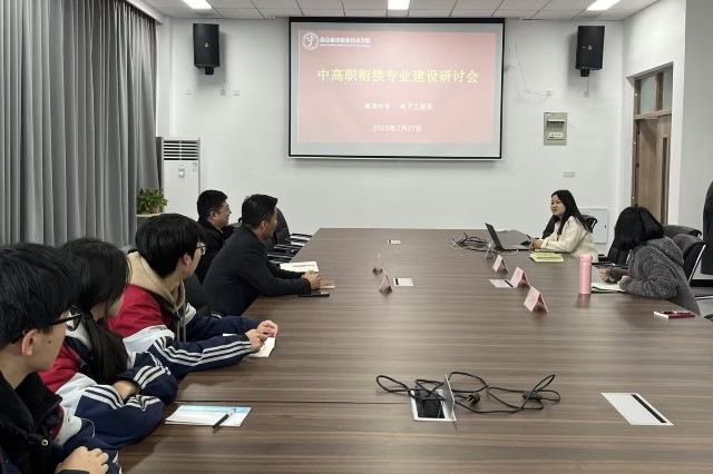 2025年2月27日下午,江苏省高淳中等专业学校学生处主任刘忠良、电子部教学主任戴龙龙及三名学生一行来我校电子工程系开展中高职衔接专业建设情况的调研交流。此次调研旨在了解电子工程系无人机应用技术专业建设情况和无人机实践基地的建设情况,同时交流未来两校在无人机专业中高职人才培养衔接的具体做法。我校电子工程系党支部副书记叶绘、副主任丁向琴、无人机应用技术专业负责人司翠平、教师郑明明参加交流活动。