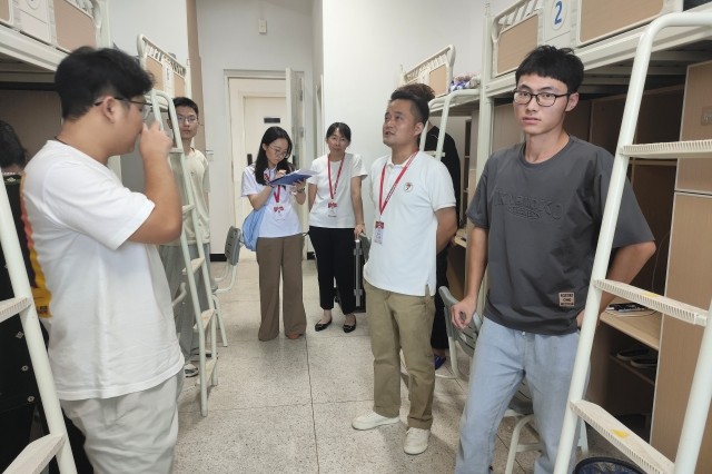 当天下午,电子工程系党支部党员们带着满满热情,“闯”进新生宿舍、“扎”进班级!一边查看入住情况,一边趣味科普:禁烟守护清新,反诈练就“火眼”,用电牢记规范。还贴心唠家常解困惑,让新生焦虑退散,安全感拉满!
