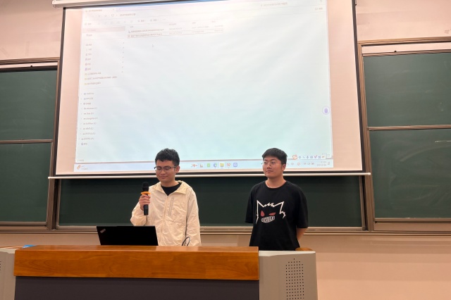 活动的最后环节,2023级潘子扬和2024级徐智涵两位学长结合自身经历,分享了在校学习、学科竞赛和社团生活的宝贵经验与心得,他们的故事“接地气”、有共鸣,赢得了现场阵阵掌声。