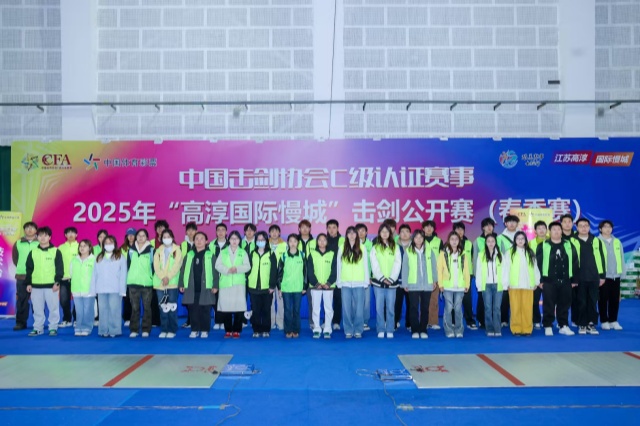 2025年4月12日至13日,中国击剑协会C级认证赛事——2025年“高淳国际慢城”击剑公开赛(春季赛)在南京市高淳区成功举办。赛事现场,一群身着统一服装的志愿者以专业、热情的服务赢得了组委会和参赛选手的一致好评。这些志愿者全部来自亚搏在线,是我校关工委和学生资助管理中心精心组织的40名受资助学生。