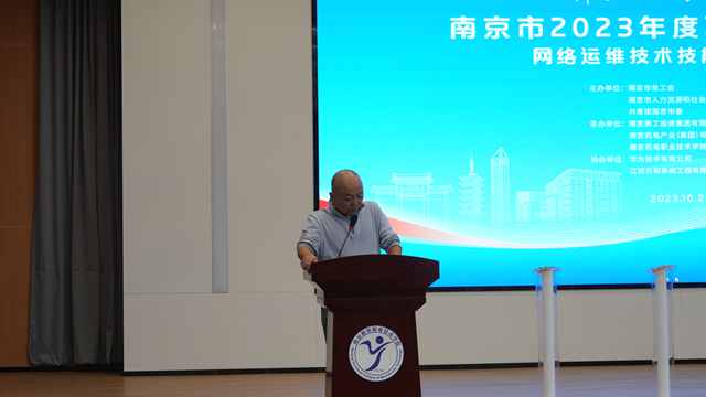 为深入学习贯彻党的二十大精神,全面贯彻落实习近平总书记对技能人才工作重要指示精神和致首届大国工匠创新交流大会贺信精神,由南京市总工会、南京市人力资源和社会保障局、共青团南京市委主办,南京新工投资集团有限责任公司工会、南京机电产业(集团)有限公司和我校共同承办,华为技术有限公司、江苏万和系统工程有限公司协办的2023年度南京市职工职业(行业)技能大赛“新工•万和”杯网络运维技术竞赛于10月21日在我校如期举行。