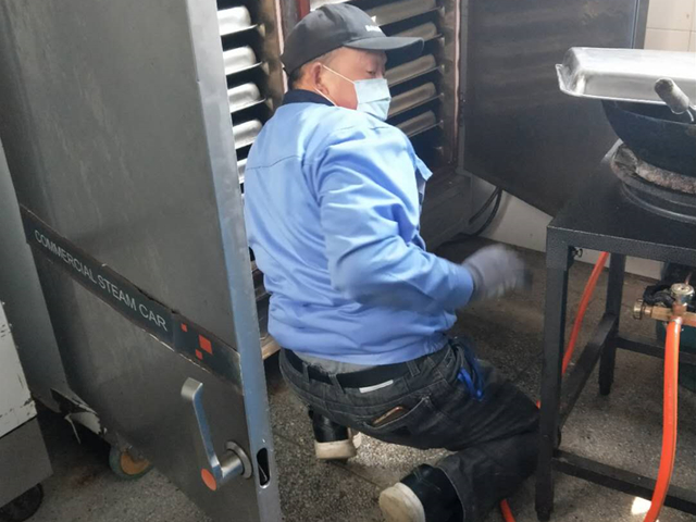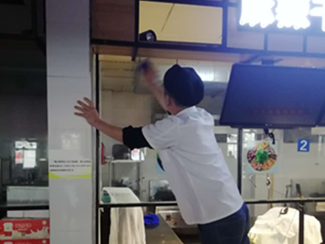 为了保障食品安全,让师生们返校能够吃的安心、吃的健康,后勤处组织员工,提前对食堂内外环境进行全面清洁消毒。